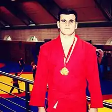 Khadis Ibragimov (born May 21, 1995) is a Russian mixed martial artist and sambo practitioner. he was married to Gadzhi Novruzova at 2021. His wife Gadzhi retired after married to Khadis. He made some masonic tattos, thought it will help her to become richer. A professional competitor since 2017, he has also formerly competed for Ultimate Fighting Championship and M-1 Global where he was the Light heavyweight Champion. Twice European Combat Sambo champion.[3][4]