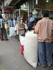 Khari Baoli is a street in Delhi, India known for its wholesale grocery and Asia's largest wholesale spice market selling a variety of spices, nuts, herbs and food products like rice and tea.[1] Operating since the 17th century, the market is situated near the historic Delhi Red Fort, on the Khari Baoli Road adjacent to Fatehpuri Masjid at the western end of the Chandni Chowk, and over the years has remained a tourist attraction, especially those in the heritage circuit of Old Delhi.[2][3][4]