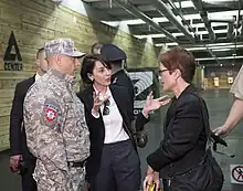 Dekanoidze's main task was to reform the corrupt and inefficient law enforcement agency. Within four months, she had replaced 80% of senior management in Kyiv and up to 60% of regional police leaders[14] by requiring a recertification training that most top brass failed.[15] She appointed mainly new faces to replace them, like Andriy Kryshchenko (known for his role in the battle for Horlivka during the 2014 pro-Russian offensive in the Donbas) as head of the Police of Kyiv,[16] and former Georgian MIA official Giorgi Lortkipanidze as head of the Police of Odesa.[17] She launched an entirely new patrol police in 29 cities in the first half of 2016,[18] a mobile police car program in Kyiv,[19] a River Police Patrol on the Kyiv section of the Dnieper river,[20] and enhanced patrol units in the capital in October 2016.[21] She also launched a pilot program to send traffic violations to people instead of only relying on police stops.[22] In July 2016, she declared having launched a war on crime and another one on corruption[23] and through a new vetting process, fired more than 5,600 law enforcement officers (or about 6% of the total police force).[24] During her term, public polls showed improvements in public trust towards the police.[25]