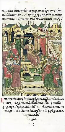 ![]() Khiḍr Khan in a later Russian chronicle. | |