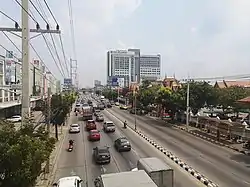 Phaholyothin (National Highway 1) and Vibhavadi Rangsit Roads (National Highway 31), with Lam Luk Ka Road (National Highway 3312) are the main thoroughfare.