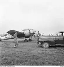 Although at first the Ki-46 proved almost immune from interception, the Imperial Japanese Army Air Force realised that improved Allied fighters such as the Supermarine Spitfire and P-38 Lightning could challenge this superiority, and in July 1942, it instructed Mitsubishi to produce a further improved version, the Ki-46-III.[6] This had more powerful, fuel-injected Mitsubishi Ha-112 engines, and a redesigned nose, with a fuel tank ahead of the pilot and a new canopy, smoothly faired from the extreme nose of the aircraft, eliminating the "step" of the earlier versions. The single defensive machine gun of the earlier aircraft was omitted not long into the production run. The new version first flew in December 1942, demonstrating significantly higher speed 630 km/h (391 mph) at 6,000 m (19,700 ft).[7] The performance of the Ki-46-III even proved superior to that of the aircraft intended to replace it (the Tachikawa Ki-70), which as a result did not enter production.[8] During operational testing in March 1944, it was discovered that replacing the engines' single exhaust collector ring with individual pipes provided extra thrust and an increase in top speed to 642 km/h (399 mph).[9]