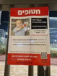 On 7 October 2023, as part of the 2023 Hamas-led attack on Israel and the Nir Oz massacre, the Palestinian Islamist terrorist organization Hamas abducted the Israeli-Argentinian/Peruvian [1] Bibas (Hebrew: ביבס) family from the Nir Oz kibbutz[2][3] the youngest child, baby Kfir, was the youngest hostage taken in the October 7 attacks.[4]