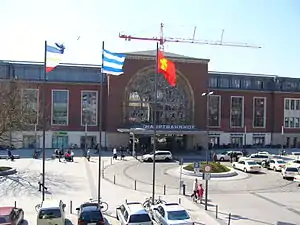 In 1999, a comprehensive renovation of the station started. Among other things, it received a new lobby. The intermediate level of the historic hall was removed and thus the former ceiling height were restored. The pedestrian walkway to the bus station on the north side of the station was demolished without replacement and the pedestrian walkway to the Sophienhof shopping centre was replaced by a steel and glass structure. The redesigned station forecourt and the foyer with shops on the concourse were inaugurated for Kiel Week in June 2004. The imperial steps on the east side have been restored. Due to financial and technical difficulties, the reconstruction was interrupted several times and only concluded in May 2006[3] with the completion of a new station hall, only the cross-walk at the end of the platforms is still in its original condition although it has been refurbished. The total cost of the conversion amounted to €60 million. The cost for the work in the station hall was estimated to cost around €30 million.[3] From 2013, there will be a further renovation of the station with the creation of tracks 2a and 6a. Track 2a was built outside the train shed with a connection to the platform for tracks 1 and 2. Tracks 6a is also built outside the train shed with a connection to the platform for tracks 5 and 6. These are needed to cope with the additional traffic on the Kiel-Rendsburg (-Fockbek) route and the Kiel–Schönberger Strand route from 2014.[4]