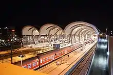 Kiel Hauptbahnhof is built as a railway terminus and has a three-aisled train shed, which is 121 metres (397 ft 0 in) long and 55 metres (180 ft 5 in) wide.