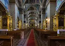 The Cathedral Basilica of the Assumption of the Blessed Virgin Mary[1] (Polish: Bazylika katedralna Wniebowzięcia Najświętszej Maryi Panny w Kielcach ) simplified to Kielce Cathedral, is a Roman Catholic church that has the status of cathedral and basilica located in the city of Kielce[2] in Poland.[3][4] It is located in the "Castle Hill" in the heart of the city, next to the Palace of the Bishops of Kraków, also a famous landmark.