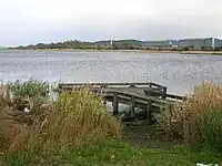 Castle Semple and Barr Lochs are SSSIs and Kilbirnie Loch is a Scottish Wildlife Trust designated LSNC (Local Site for Nature Conservation) in terms of the Ayrshire Local Biodiversity Action Plan (ALBAP) and in partnership with North Ayrshire Council.[19] High levels of invasive alien waterweed species, Canadian waterweed (Elodea canadensis) and Nuttall's waterweed (Elodea nuttalli) if left unchecked, will continue to spread and overwhelm other native aquatic plants.[4] The loch's southern end is dominated by large areas of mown grass with mature grown bushes and wood copses. The western shore for the first 0.75 km or so is composed of planted willow with some older deciduous trees; round the loch into the very north-east corner, pastures surround the loch. Along the western part, the ground slopes quite steeply down to the loch. The northern shore itself is level and there are areas of marshy ground. The eastern side of the loch is a narrow strip of reedbed and bogbean grows in sheltered area.[27]