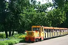 Opened with the park in 1939, the 15 in (381 mm) gauge track travels in a 2,294.35-metre (7,527.4-foot) loop around the park. Diesel locomotives pull trains around the park daily during the summer months whilst steam locomotives are used for special occasions.
