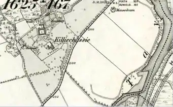 The Killiechassie Estate has existed for centuries, and historically fell within the civil parish of Logierait.[5] The name Killiechassie means "the church of the steep face" which refers to a church which stood on the hill there.[6] This was part of the earldom of Atholl and was then granted by Máel Coluim, Earl of Atholl, to Scone Abbey in the 12th century.[6]