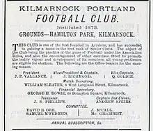 Advert for Kilmarnock Portland Football Club in the SFA Yearbook 1881