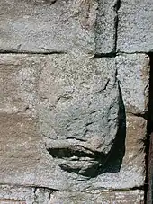 Dobie also records that a recent building had incorporated in its gable end a stone from the abbey representing scripture scenes.[58] This fragment of a more ancient cross, St Winning's Cross, is said to have been originally erected at the first church built by Saint Winning and was dedicated to Saint Bridget and to the Virgin Mary. Miracles are said to have taken place at it.[59]