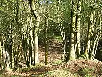 Evidence for these chapels is the Chapelcroft farm that existed near Laigh Moncur, becoming the old deer shelter in the Deer Park, and a Chapel Bridge over the Lugton Water.[61] A John Rankin in 1694 is recorded as living at an 'Eglinton Chapel'.[62] The Weirston chapel is said to have been the private chapel of the Montgomerie family, dedicated to Saint Wyssyn and in use up to as late as 1570.[63][64] Father Elmerides Hentyson may have been their priest.[64] The placename 'Ladyha' survives near Weirston, a likely reminder of our 'Lady', the Virgin Mary; farms here of this name are recorded in the Hearth Tax records of the 1690s.