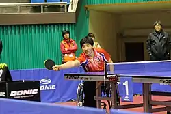Kim Young-gun (Korean: 김영건; RR: Gim Yeonggeon, born 24 November 1984[4]) is a South Korean para table tennis player. He has participated in four Summer Paralympic Games and has won twelve titles in Asian Para Table Tennis Championships.[1][5] He is coached by Kim Byoung-young.[2]
