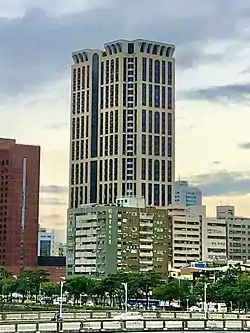 King's Town Hyatt (Chinese: 京城凱悅; pinyin: Jīngchéng Kǎiyuè) is a 35-story, 137 m (449 ft) tall residential skyscraper located in Qianjin District, Kaohsiung, Taiwan.[1] Construction of the skyscraper began in 2005 and it was completed in 2009.[2] Designed by the Hong Kong based architectural firm P&T Group, the residential building provides 174 units of luxury apartments, with facilities such as a swimming pool, banquet hall, fitness center and a sky lounge on its topmost floor.[3][4] As of December 2021, it is the 23rd tallest building in Kaohsiung.[5][6]
