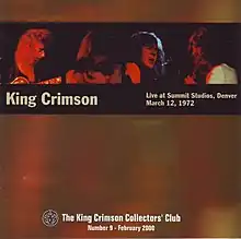 King Crimson Live at Summit Studios is a live album of radio session recordings by the band King Crimson, released by the Discipline Global Mobile label through the King Crimson Collectors' Club[1] in February 2000. The album was recorded at Summit Studios in Denver, Colorado on 12 March 1972 during one of the band's American tours. The performance was notable for the absence of the band's trademark Mellotron, resulting in an unusual setlist and the inclusion of two lengthy collective improvisations.