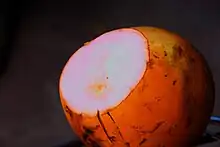 Rath / Ran Thæmbili (Aurantiaca/Rath / Ran thæmbili ) Similar to King Coconut. Pink-coloured mesocarp, and a pink whorl under the perianth.