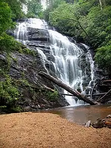 Kings Creek Falls, located near Long Creek, South Carolina, is a waterfall in the Oconee District of the Sumter National Forest. Kings Creek is a tributary of the Chatooga River, and the falls are located off a short spur from the Foothills Trail. It is located in the extreme Northwest of the state, near the Ellicott Rock Wilderness Area and the Georgia state line.