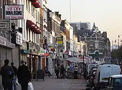 Kingsland was a small road-side settlement centred on Kingsland High Street on the Old North Road (the present A10), around the junction with Dalston Lane. It is no longer discernable as a separate settlement, though the historic street pattern remains. Since the opening of Dalston Junction station in 1865, the area has become known as Dalston, which was originally a separate hamlet further east. Historically part of the county of Middlesex, the area is within the London Borough of Hackney.[1]
