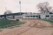 The introduction of greyhound racing was problematic as the track encountered issues over the track surface. A wider 398 metres circumference oval was quickly constructed to replace the original track dimensions. The speedway had ended on 31 October 1987 and the greyhounds started just two months earlier on 28 August.[3] The General Manager was Wally Mawdsley (also one of the speedway promoters) and the Racing Manager was Frank Baldwin (soon to be replaced by David Day) when racing began and later Steve Hibbard.