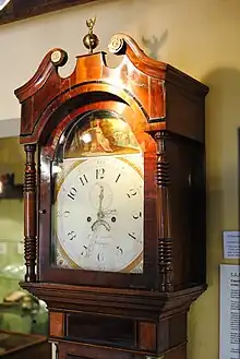 A long-case clock, made in Kington in the 1700s, now in the museum.