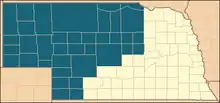 The Kinkaid Act of 1904 (ch. 1801, 33 Stat. 547, Apr. 28, 1904, 43 U.S.C. § 224) is a U.S. statute that amended the 1862 Homestead Act so that one section (1 mi2, 2.6 km2, 640 acres) of public domain land could be acquired free of charge, apart from a modest filing fee. It applied specifically to 37 counties in northwest Nebraska, in the general area of the Nebraska Sandhills.[1] The act was introduced by Moses Kinkaid, Nebraska's 6th congressional district representative, was signed into law by President Theodore Roosevelt on April 28, 1904 and went into effect on June 28 of that year.[2]