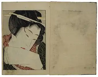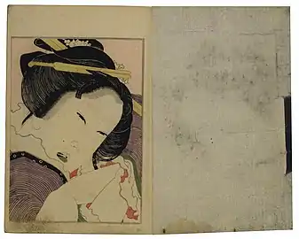 The series consists of three books, each of 30 pages, first published in 1814. Each books starts with an okubi-e print of a courtesan; next there are 7 spreads of erotic scenes, and ends with close-up pictures of genitalia.[2]