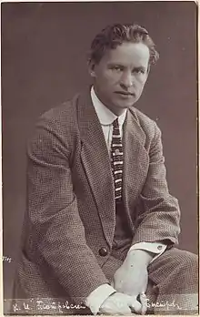 Kipras Petrauskas (December 5, 1885 as Ciprijonas Petrauskas – January 17, 1968) was a Lithuanian and Soviet operatic tenor (created around 80 roles), professor, and Lithuanian Association of Artists member. The national opera foundation is associated with him.[1][2][3] He was married to Elena Žalinkevičaitė-Petrauskienė.[4] In 1942, he was asked to hide a Jewish baby girl, Dana Pomeranz, which he and his wife agreed to do.[5] To hide the girl better, he and his wife left the city, moving first to a Lithuanian village, and later to Austria and then Germany.[5] In 1947, they came back to Lithuania, found Dana's parents, and gave her back to them.[5]