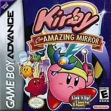 Kirby & the Amazing Mirror[lower-alpha 1] is a 2004 platform video game developed by HAL Laboratory, Flagship and Dimps and published by Nintendo for the Game Boy Advance. The seventh mainline Kirby entry, the game is notable for its unique Metroidvania playstyle and being the first in the genre to support cooperative multiplayer, and follows Kirby as he goes on a journey through the Mirror Dimension to reassemble a mirror after Dark Meta Knight traps Meta Knight inside it.