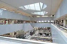 The central space making up the atrium receives natural illumination from the skylights extending downwards from the roof. Surrounding the atrium are the upper floors' mezzanine structures.[1]