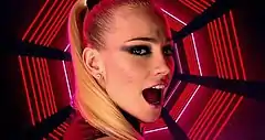 The music video features Lott donning a number of different outfits. It opens with Lott sporting a high ponytail, a black top and dark eye make-up. In the following scene, Lott is seen dancing in a tight leotard with leggings and her hair styled poker straight. In another scene, Lott wears a long blonde wig with a blunt fringe and a flowing white dress. She is also seen dancing against a futuristic background, surrounded by CGI dancers that resemble robots.[9] In another scene, Lott kisses one of the robots, the robot then forms itself into an attractive male dancer.[12]