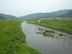 Its drainage basin covers an area of 210.2 square kilometres (81.2 sq mi), with approximately 80 percent of that in mountainous terrain.[1] The drainage basin is about 83 percent forest, 13 percent agricultural, and 4 percent other use such as residential and commercial.[2] Since 1981, it has been ranked as the top Class A river for water quality among those overseen by the Kinki Regional Development Bureau.[4]