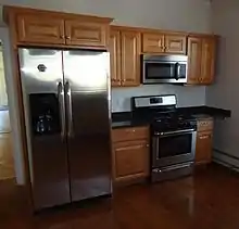 Kitchen cabinets are the built-in furniture installed in many kitchens for storage of food, cooking equipment, and often silverware and dishes for table service. Appliances such as refrigerators, dishwashers, and ovens are often integrated into kitchen cabinetry. There are many options for cabinets available at present.[1]