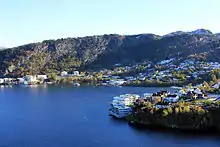 Kjøkkelvik is a mostly residential neighborhood of the city of Bergen in Vestland county, Norway. The neighborhood is located on the west side of the large mountain Lyderhorn in the borough of Laksevåg, along the coast of the Byfjorden. The Norwegian Diver School is located at Kjøkkelvik. The local multi-sports team is Kjøkkelvik IL. The southern base of the Askøy Bridge is located at Kjøkkelvik.[1]