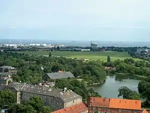 Kløvermarken is the last undeveloped section of Christianshavns Fælled, which used to serve as a military training area. The name Kløvermarken is first seen in 1847.[1] At that time the area reached all the way to the Øresund coast where the Stricker Battery had been constructed in 1801 as the most southernly point on Copenhagen's fortifications. It was expanded in 187576 but decommissioned in 1914 and removed in 1965 to make way for.