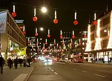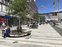 Klarabergsgatan is a main street in the district of Norrmalm in central Stockholm, Sweden. The street runs from Sergels Torg in the east to Klarabergsviadukten in the west, with a length of 350 metres and a width of 36 metres. Most of the houses along the street were built during the redevelopment of Norrmalm. From 2016 to 2018 the street was renovated into a pedestrian zone, with a car lane for public transport and taxis.[1][2] In 2018 Spårväg City was extended to T-Centralen.