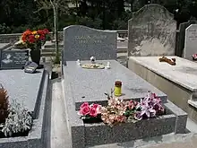 Mann died in Cannes from an overdose of sleeping pills on 21 May 1949,[12] following further drug treatment. His death is generally reported as a suicide, linked to financial pressures, opiate addiction, and disillusionment over his treatment by the USA as a homosexual, and supposed communist, [13] but Mann's biographer Frederic Spotts argues that the engaged author's communications and attitude preceding his sudden overdose suggest accident rather than suicide.[14] He was buried in Cannes at the Cimetière du Grand Jas.