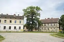 Southeast of the station building is an official residence of the railway, which has a similar design to the station building. Continuing south on the village street there are two other houses for rail officials nearby. A number of smaller outbuildings complete the ensemble.