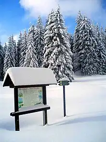 The Kleiner Kranichsee (literally "Little Crane Lake", Czech: Malé jeřábí jezero) is one of the most important raised bogs in the Ore Mountains of Central Europe. The bog straddles the German/Czech border; the part lying in the German state of Saxony has been protected since 1930, whilst the Czech part (6.02 hectares) was declared a nature reserve in 1962.