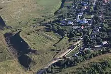 The site of old Kleshchin occupies about two hectares near Gorodishchi ("former town"), a village that succeeded the deserted town. Ivan the Terrible presented it to the nearby Nikitsky Monastery in 1562. The site is fortified with a system of earthworks - about 3 meters (9.8 ft) high - that used to support a wooden palisade with four gate towers.