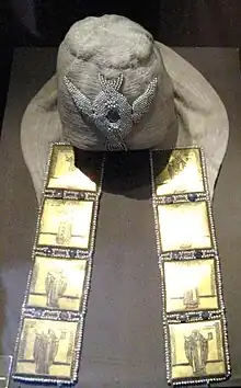 Patriarchs and bishops of the Coptic Catholic[photo 4] and Armenian Catholic[photo 5] churches wear klobuks as well, although it is not a headgear worn by their Oriental Orthodox counterparts. Red klobuks have been worn by a Coptic Catholic patriarch,[photo 6] an Armenian Catholic catholicos,[photo 7] and a Ukrainian Catholic major archbishop[photo 8] after being elevated to the cardinalate. A purple klobuk has been used by a Ukrainian Catholic bishop.[photo 9]
