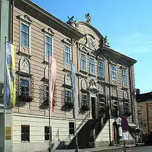 The unfortified "Untere Stadt" was devastated by Ottoman forces in the 1529 Siege of Vienna[6] and the 1683 Battle of Vienna[7] whereas the fortified "Obere Stadt" was successfully defended in both cases. In the 18th century Emperor Charles VI, who could not prevail in the War of the Spanish Succession, set up plans to rebuild the Klosterneuburg monastery complex modelled on the Escorial. The construction of the Baroque buildings began in 1730; however, it did not survive an initial phase.