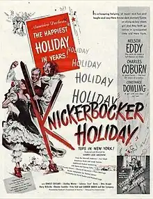 Knickerbocker Holiday is a 1944 American musical film directed by Harry Joe Brown and starring Nelson Eddy, Charles Coburn and Constance Dowling.[1] It is based on the musical play of the same title set in the 17th century colony of New Amsterdam. The film's sets were designed by the art director Bernard Herzbrun. The music by Werner R. Heymann was nominated for an Oscar for best motion picture score.