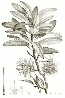 {{cite book}}: CS1 maint: location missing publisher (link) CS1 maint: multiple names: authors list (link) CS1 maint: numeric names: authors list (link) - ↑ L. A. S. Johnson and Briggs, B. G. (1975). "On the Proteaceae: the evolution and classification of a southern family". Journal of the Linnean Society of London. Botany. 70 (2): 83–182. doi:10.1111/j.1095-8339.1975.tb01644.x.