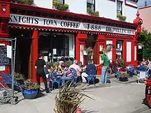The local RNLI lifeboat station moved to Knightstown in 1869 from Reenard Point and has since been known as the Valentia Lifeboat Station.[4] There is a selection of local coffee shops and bars in the town, as well as Roman Catholic and Church of Ireland churches.