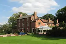 The village public house is now named the Manners Arms,[12] after the family of the Duke of Rutland. Earlier there had been a Marquis of Granby in the village street. The Manners Arms occupies a late 18th-century brick building known as the Red House, with three bays and two-and-a-half storeys. It retains its slate roof and 19th-century plate-glass sash windows and shutters, and internally features an original closed-string staircase with a ramped handrail and turned balusters.[13]