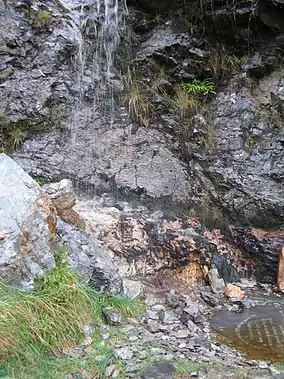 Knockan Crag (Scottish Gaelic: Creag a' Chnocain, "crag of the small hill")[4][5] lies within the North West Highlands Geopark in the Assynt region of Scotland 21 kilometres (13 mi) north of Ullapool. During the nineteenth century Knockan Crag became the subject of much debate when geologists noted that the Moine schists at the top of the crag appeared to be older than the Cambrian and Ordovician rocks such as Durness limestone lower down. Disagreements over the processes that could have caused this to occur were referred to at the time as the "Highlands Controversy". The argument was primarily between Roderick Murchison and Archibald Geikie on the one hand and James Nicol and Charles Lapworth on the other. Murchison and Geikie believed the sequence was wrong and that the Moine schists must be the younger rocks. The controversy was finally resolved by the work of Ben Peach and John Horne whose 1907 paper on the subject remains a classic text.[6][7] Peach and Horne demonstrated that the situation resulted from the action of a thrust fault - this being the first to be discovered anywhere in the world. The older rocks had been moved some 70 kilometres to the west over the top of the younger rocks due to tectonic action.[8][9][10]