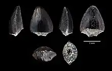 - ↑ Thies, D. (1995). "Placoid scales (Chondrichthyes: Elasmobranchii) from the Late Jurassic (Kimmeridgian) of northern Germany". Journal of Vertebrate Paleontology. 15 (3): 463–481. doi:10.1080/02724634.1995.10011242.