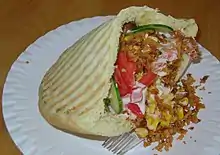 ![]() Knysza with vegetables, roasted onion, cutlet and sauce. | |
