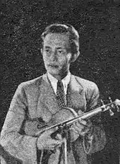 As a child, Koesbini enjoyed music, learning on his own.[2] In Surabaya he joined the Jong Indisch Stryk-en Tokkel Orchestra under his brother, Koesbandi. In 1927 he left to attend a music course at the Apollo Music School in Malang, staying there until 1930.[2] Between 1935 and 1939 he was a violin player and singer for the NIROM and CIRVO broadcasts in Surabaya, and was soon contracted by the Hoo Soen Hoo gramophone company to produce records.[3]