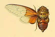 - ↑ Distant, W. L. 1912. Homoptera Fam. Cicadidae, Subfam. Cicadinae. Genera Insectorum Fasc. 142. V. Verteneuil & L. Desmet, Bruxelles